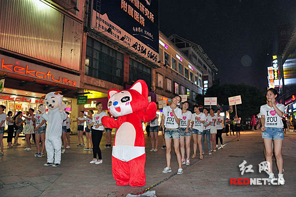 5月20日不只是说“我爱你”的日子。5月20日晚,30多名年轻靓丽的女美容师在长沙步行街中心广场跳舞,以庆祝“美容师自己的节日”。